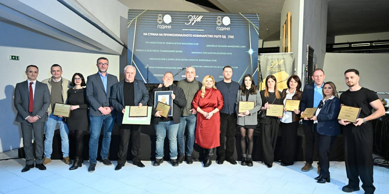 На обележувањето на 80-годишниот јубилеј на Здружението на новинари на Македонија беа наградени редакциите на Истражувачката репортерска лабораторија (ИРЛ), на истражувачкиот магазин КОД, како и новинарката Ирена Мулачка од Фокус.