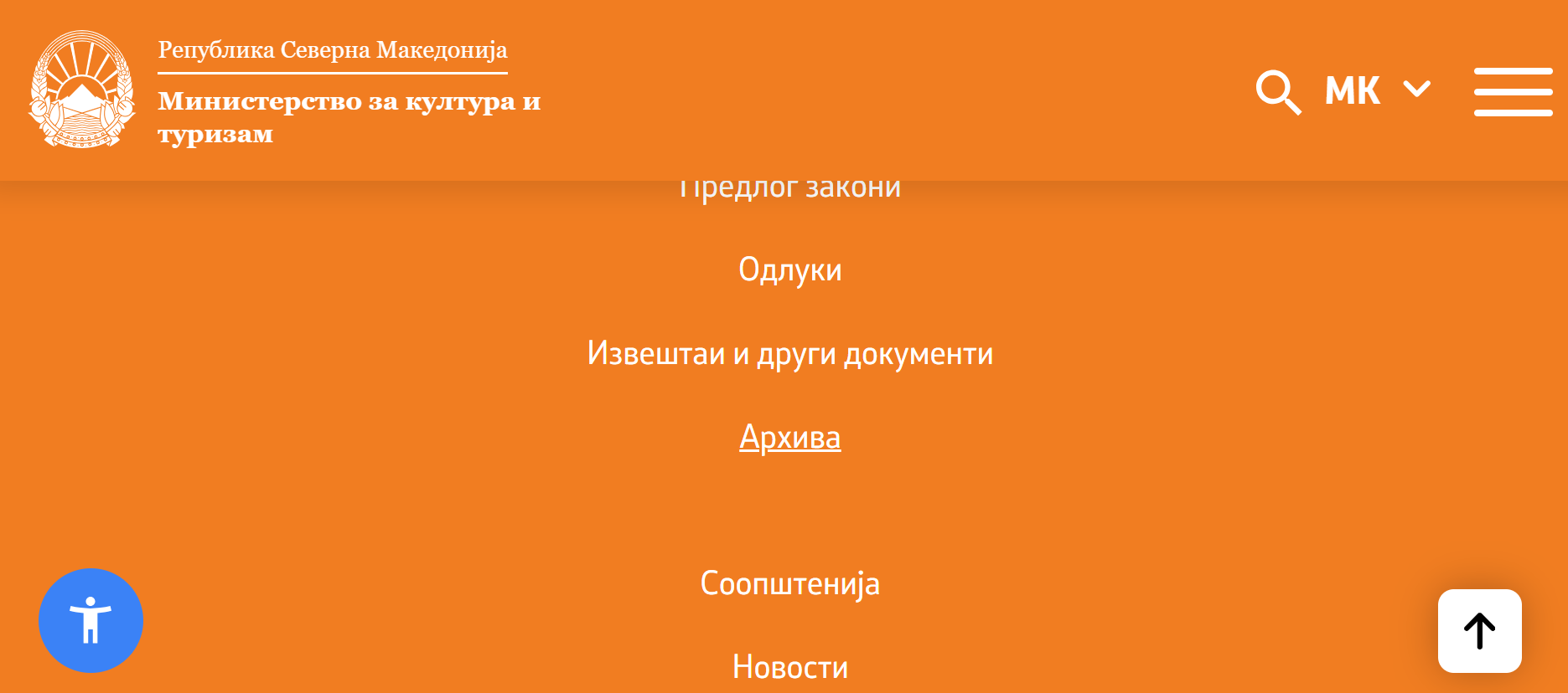 Во Министерството за култура, копчето „архива“ формално го поставија дента кога им испративме прашања зошто го немаат. Сепак, линковите внатре во архивата, не се функционални.