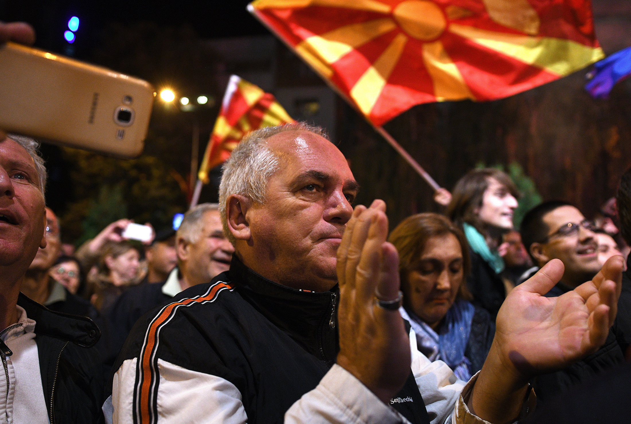 MACEDONIA – POLITICS – ELECTION Published октомври 16, 2017 at 2200 × 1480 in MACEDONIA – POLITICS – ELECTION ← Previous Next → Supporters of the ruling Social Democratic Union of Macedonia wave a Macedonian flag during victory celebrations for the local elections in Skopje on October 16, 2017./ AFP / Robert ATANASOVSKI