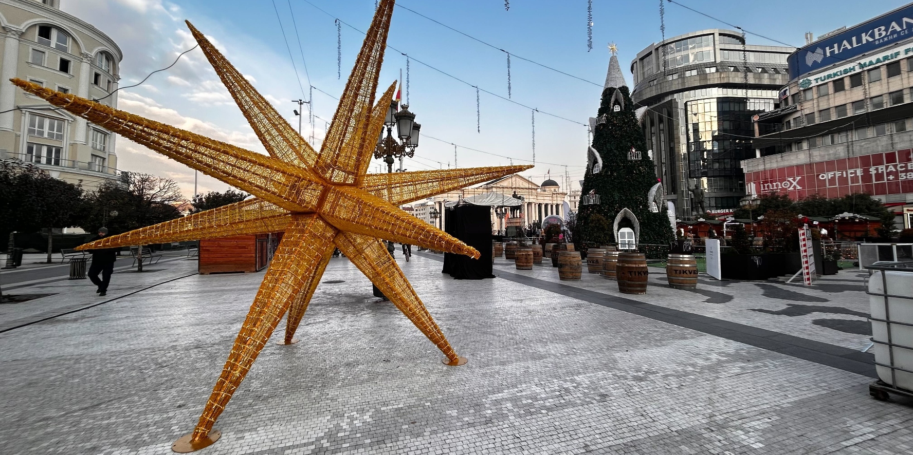 Фирмата „Линк Медиа Плус“ го украси и скопскиот плоштад | Фото: БИРН